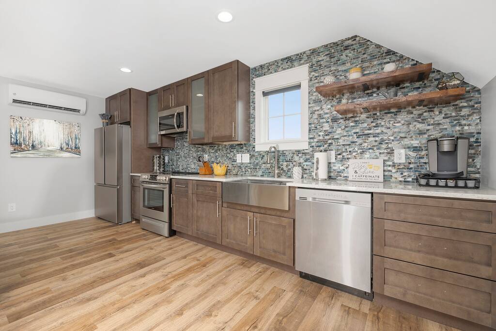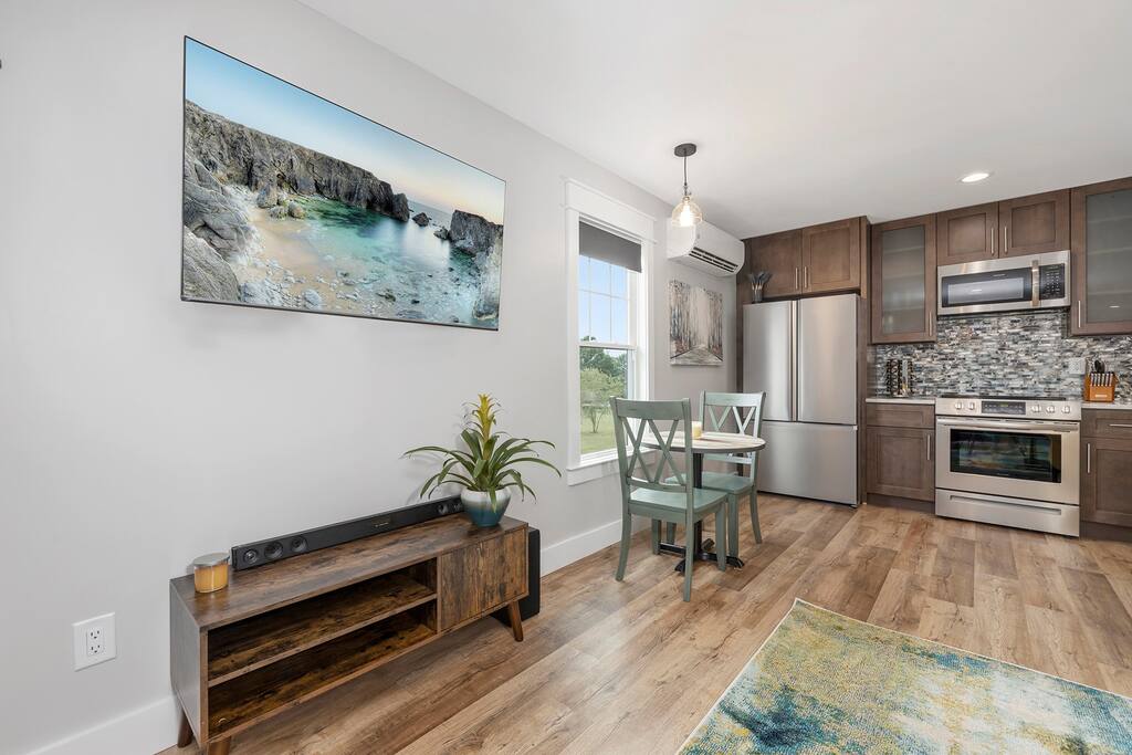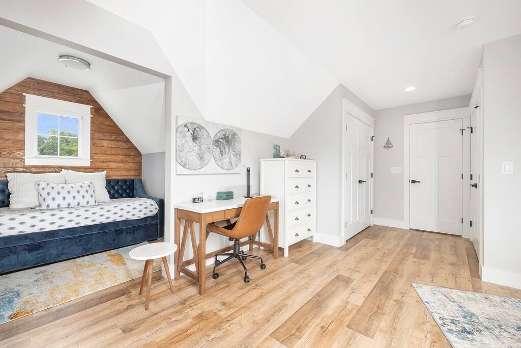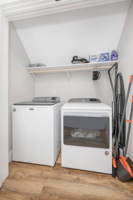 Throughout the area • Queen bed • Twin daybed with trundle. • Kitchen has everything for guest - including Keurig, French press, electric tea kettle. cookware, microwave, dishwasher. • 55 inch smart TV with Netflix • High speed Internet • Closet space, hangers, ironing board, iron, extra pillows and blankets • Towels, linens and shampoo/conditioner/soap provided • Washer & Dryer • Contact host for pack&play and other child needs.