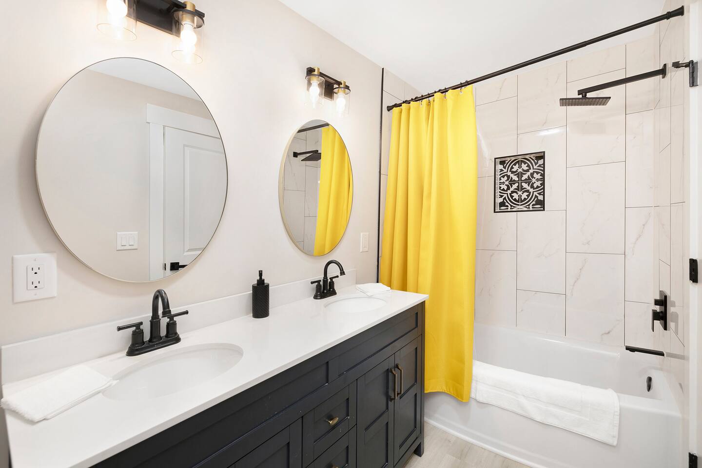 Beds: (1) King with 42" smart TV, attached private bathroom with large standing shower (1) Queen bed (1) Full with twin bunk and additional twin trundle 42" smart TV Kitchen includes all cooking utensils, pots, pans, etc. Keurig for coffee and microwave. Towels & linens are provided Washer & Dryer